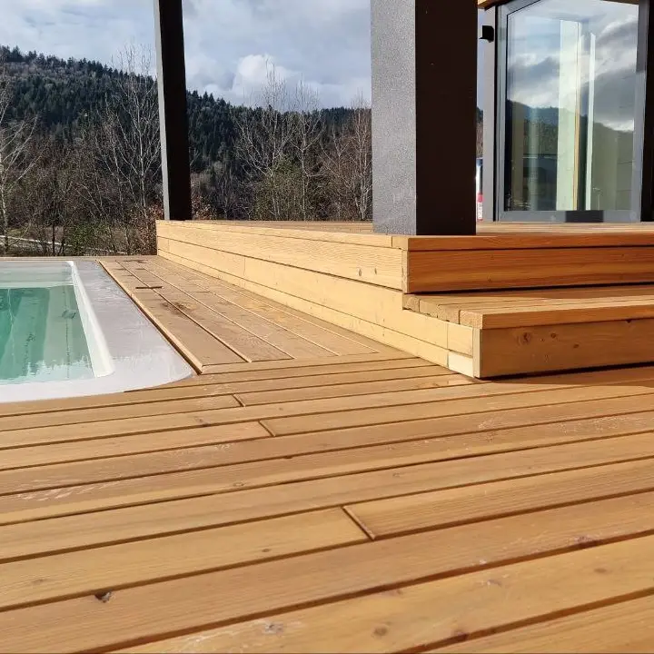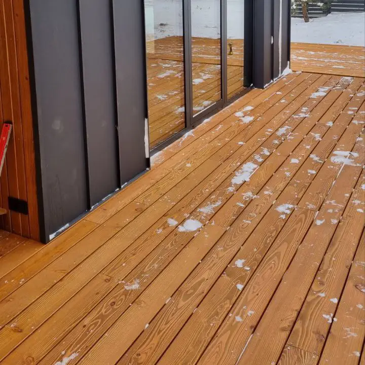 Термооброблені терасні дошки: Підвищена стійкість до гнилі, шкідників та вологості завдяки процесу термооброблення, але вони можуть вимагати регулярного обслуговування та захисних покриттів для підтримки вигляду.